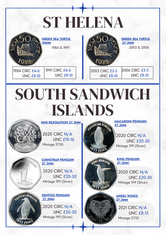 2024/2025 50p Guidebook, Coin Collectors Book, Guide Book, 50 Pence, Book, Folder, Album, Collection, Guernsey, Jersey, Great Britain, Pitcairn Islands, folder. 50p Coin Book Gift, Present, Christmas